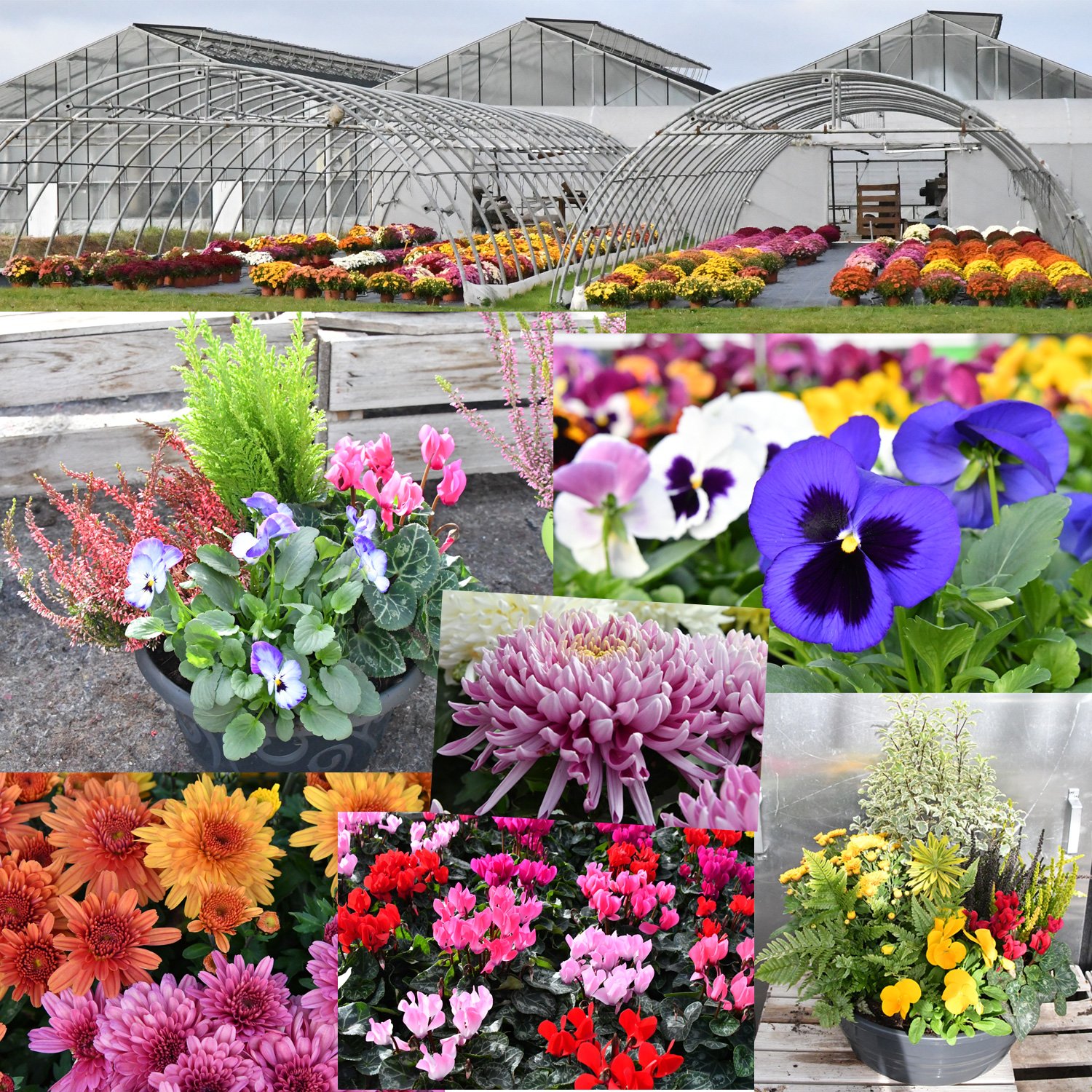 Pour la Toussaint, vous trouverez dans nos serres un grand choix de chrysanthèmes de notre production ainsi que d'autres plantes de saison et compositions.