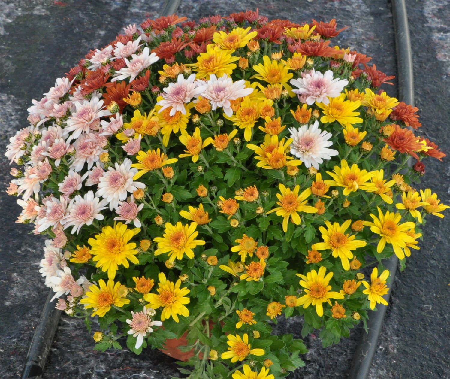 Chrysanthème petite fleurs multicouleur en pot de 19cm.