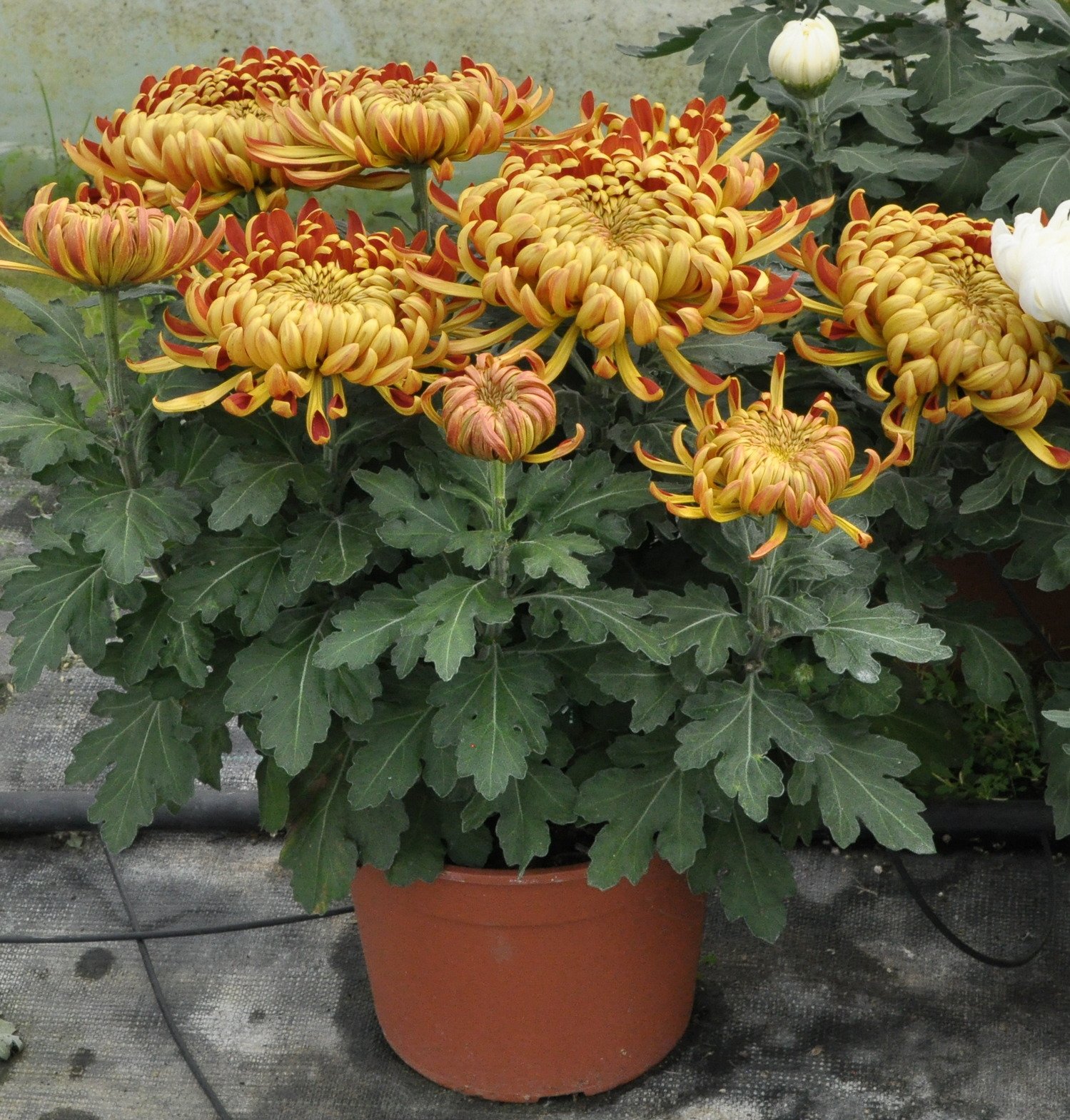 Chrysanthème grosses fleurs 4/5 têtes en pot de 19cm.